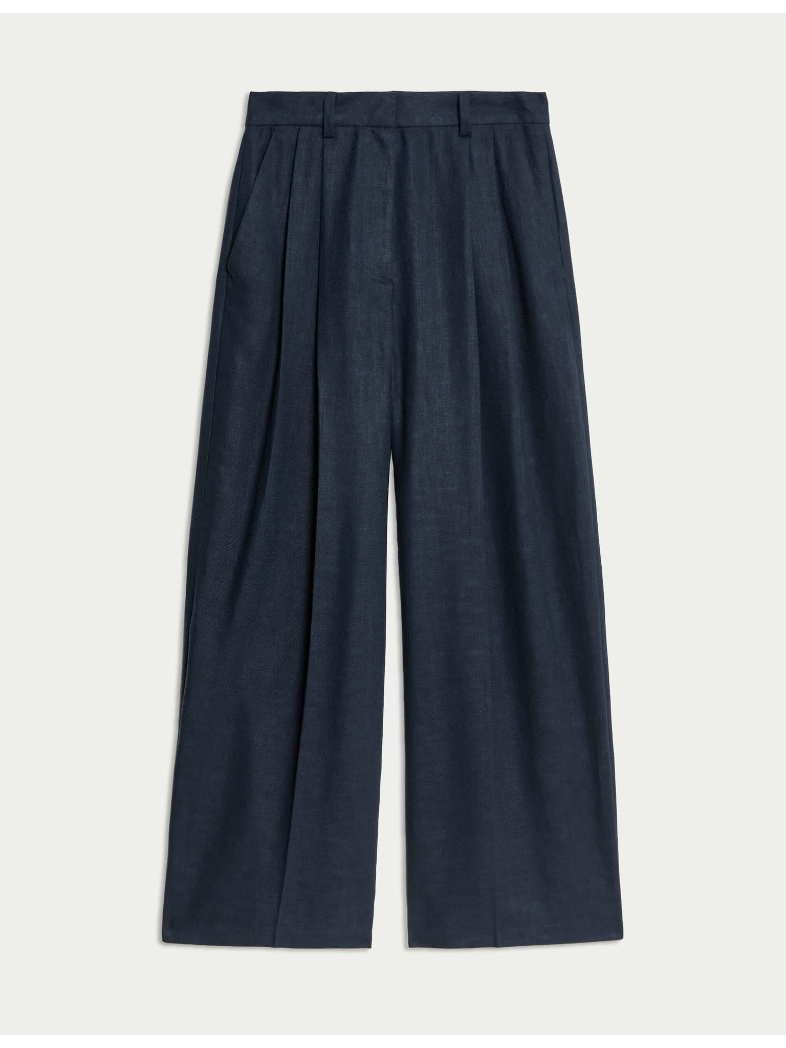 Панталони със странични гънки, широки крачоли и фини райета Marks & Spencer тъмносин