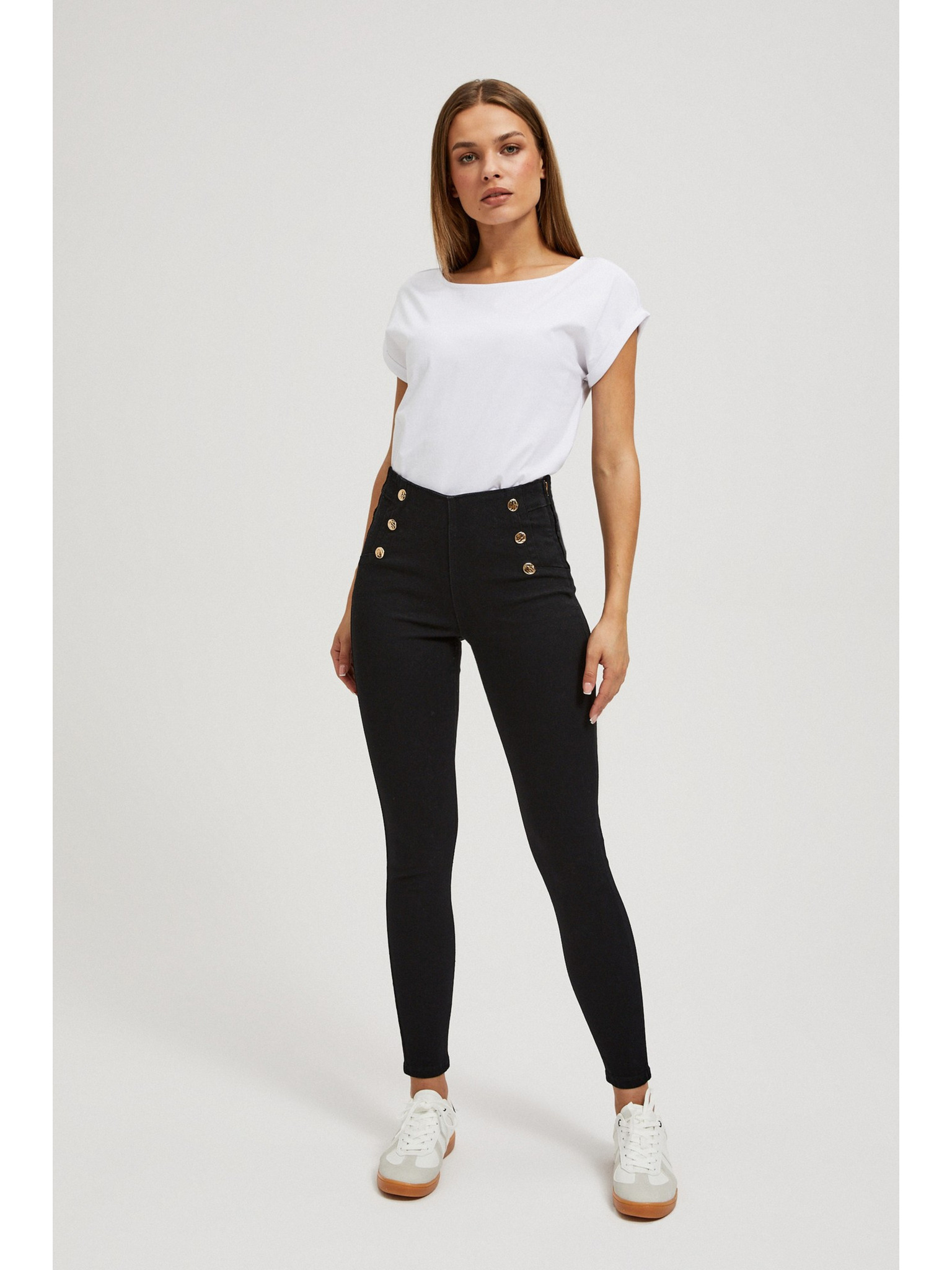Тесни дънки със среден колан, черни Moodo