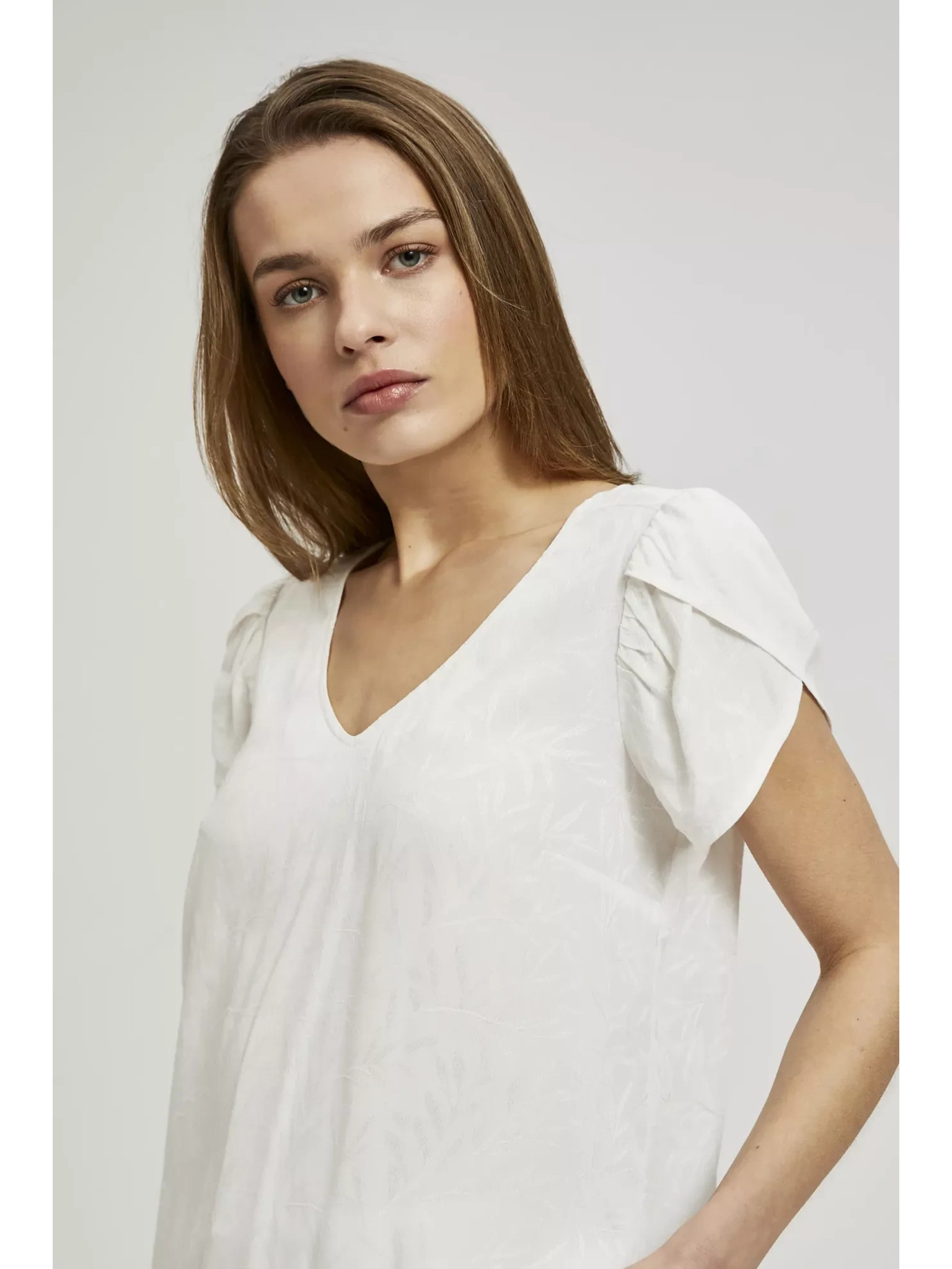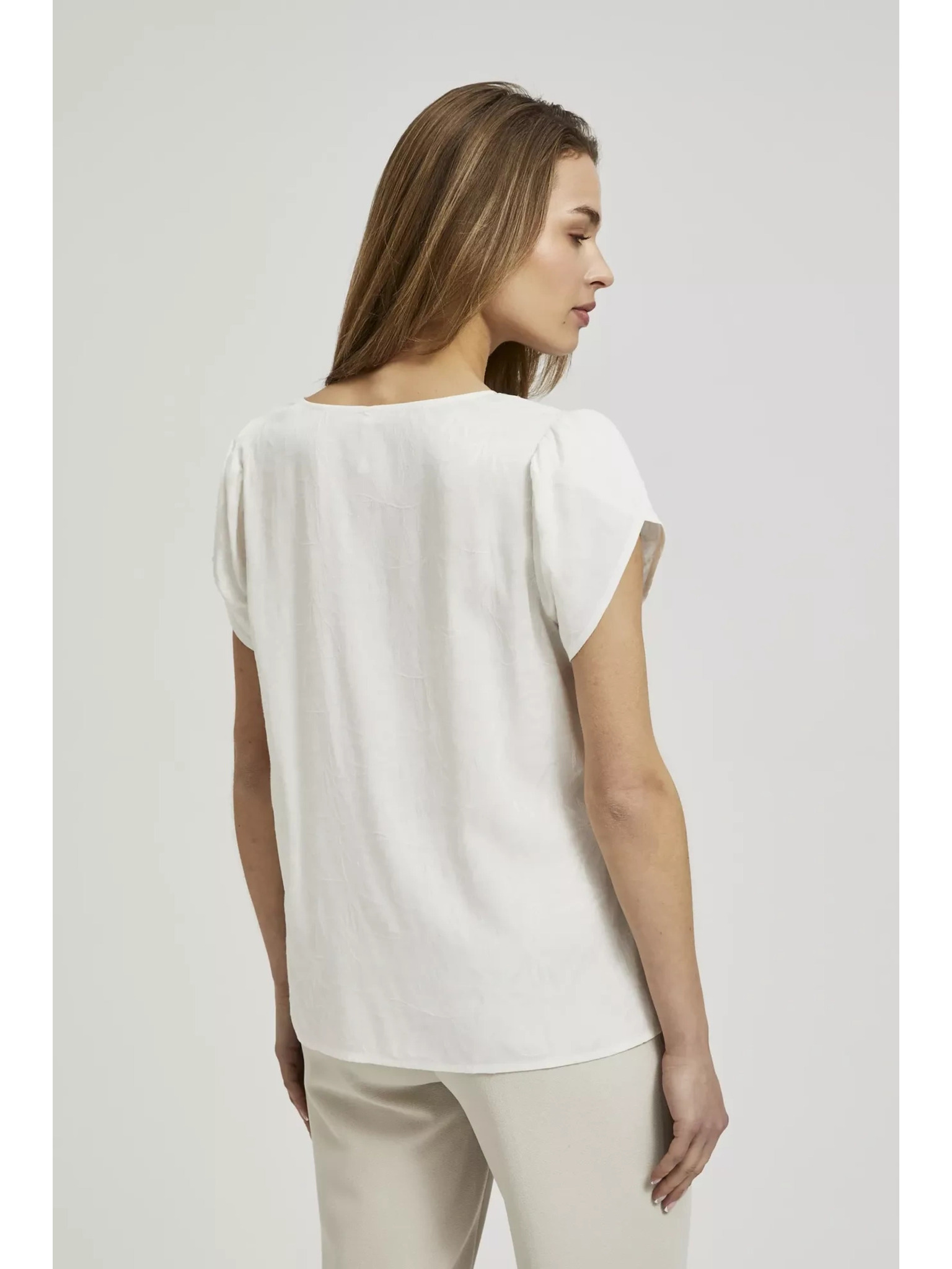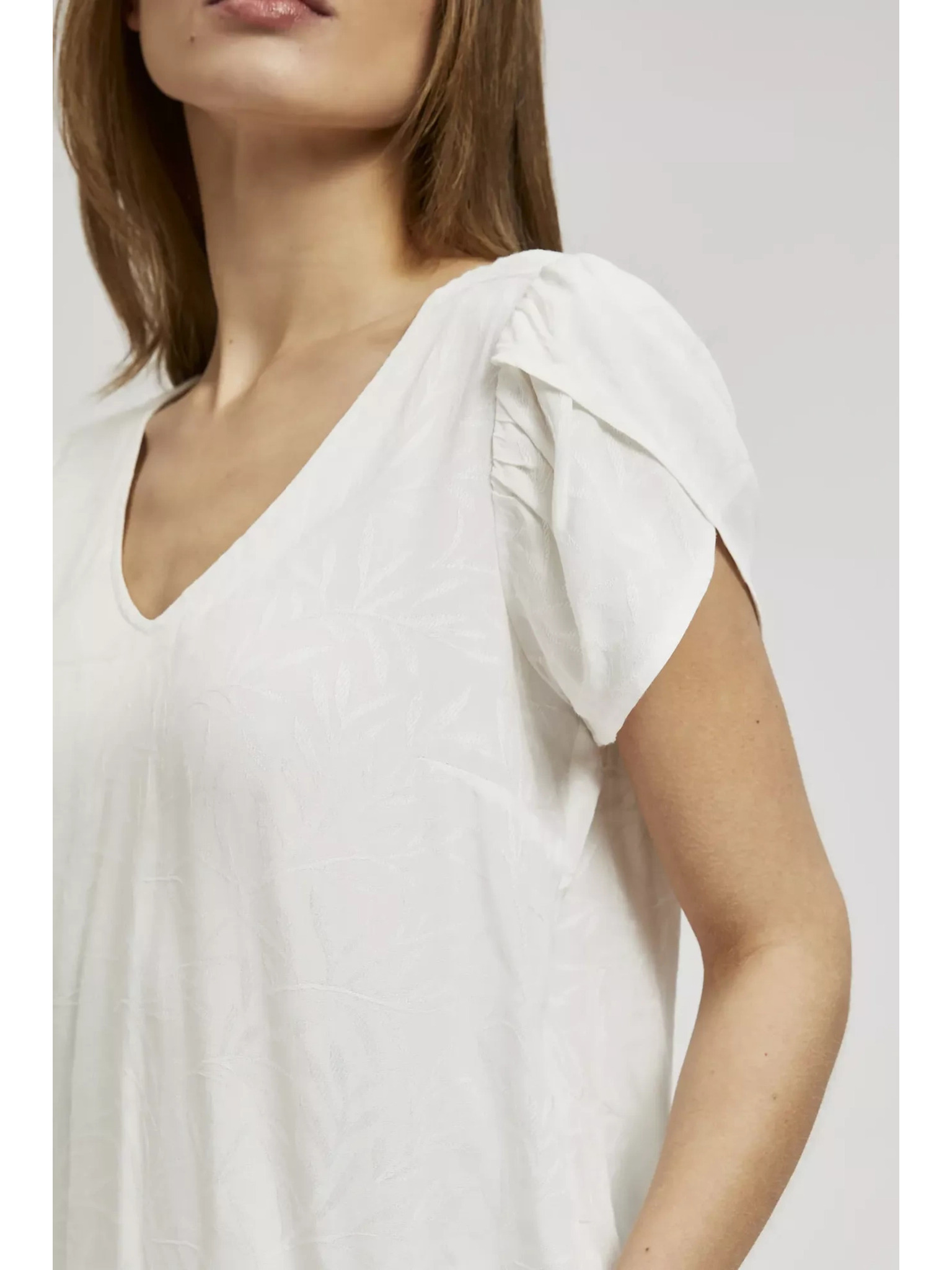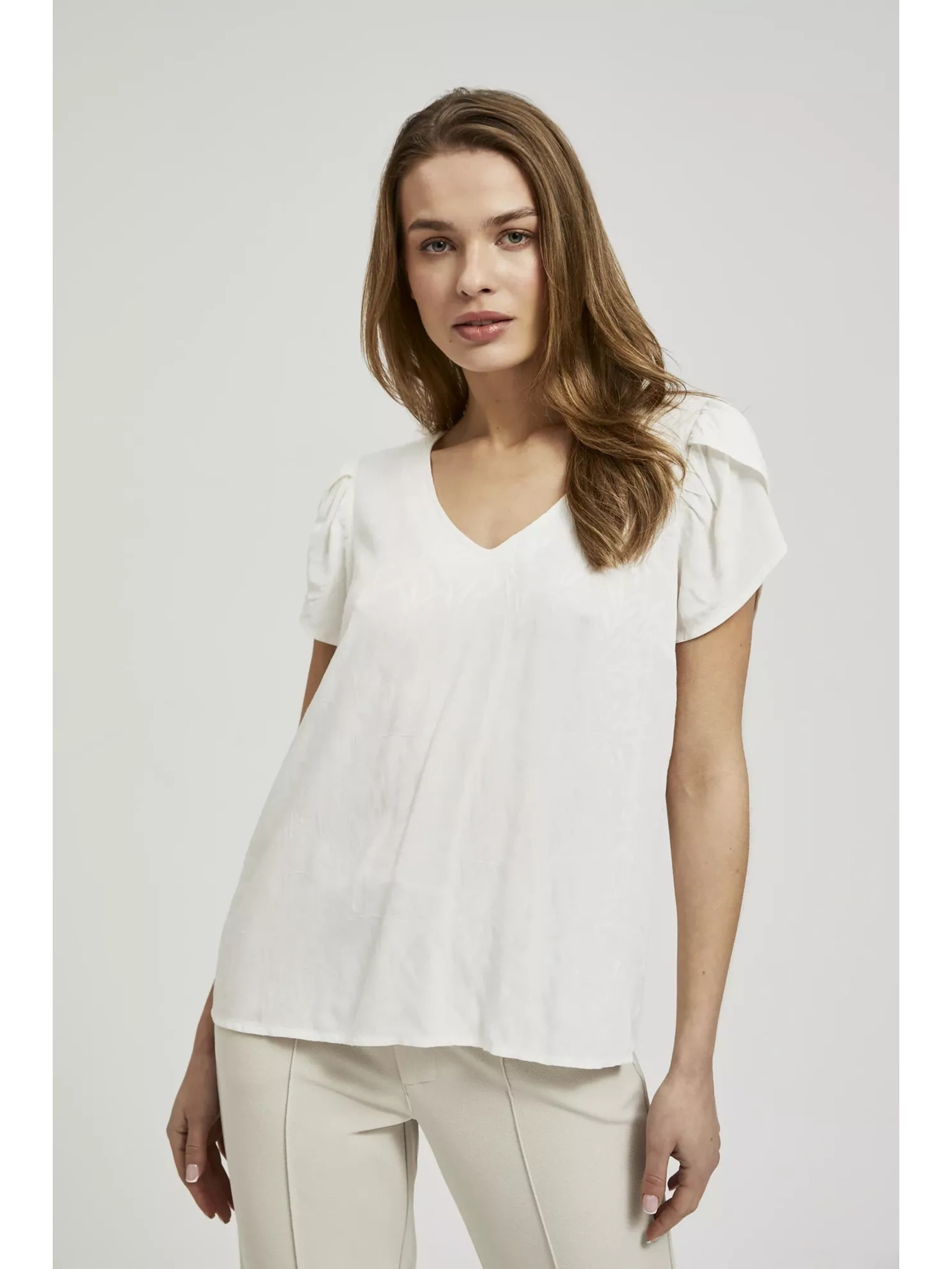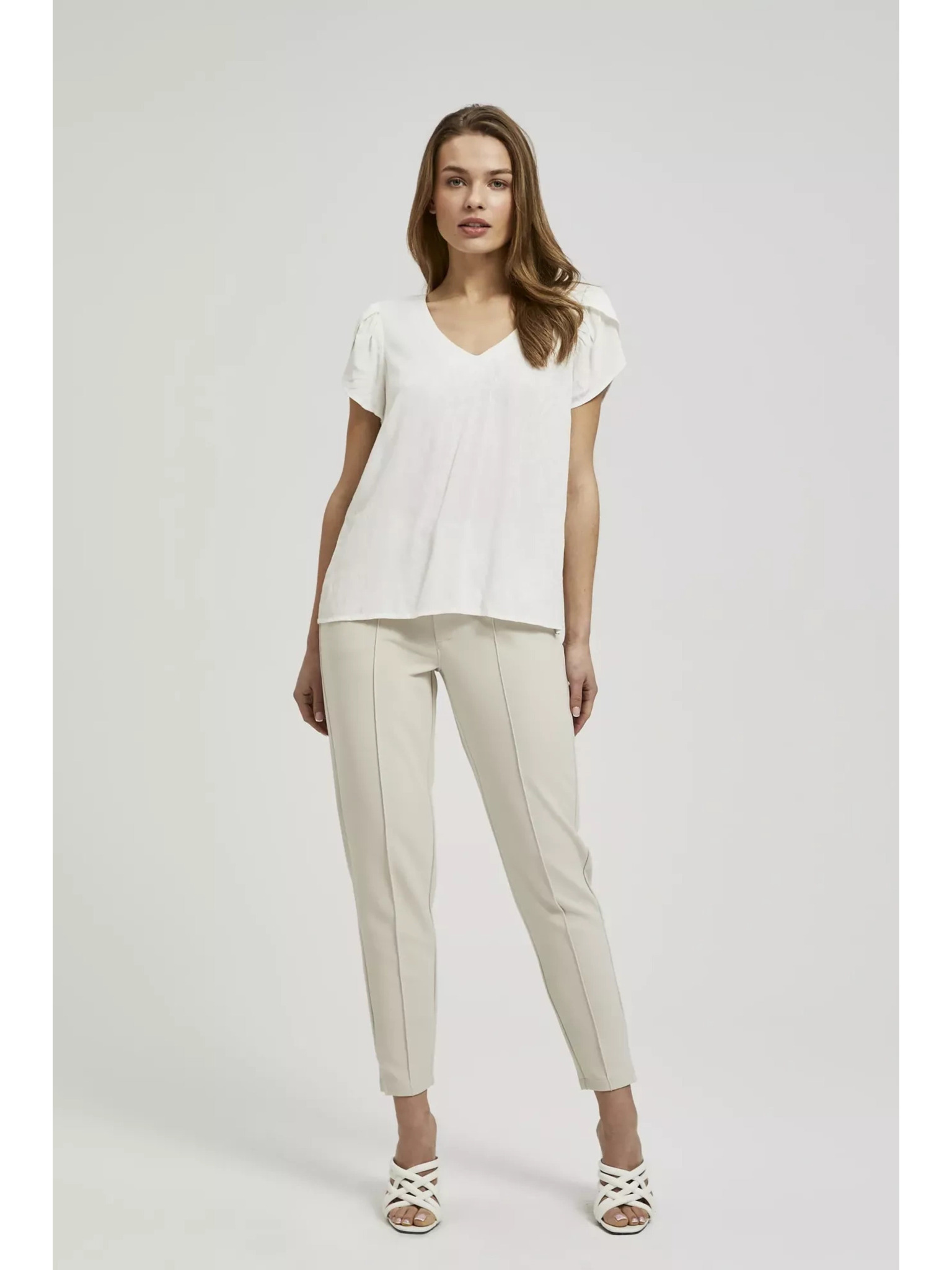 Памучна блуза с V-образно деколте в бежово Moodo
