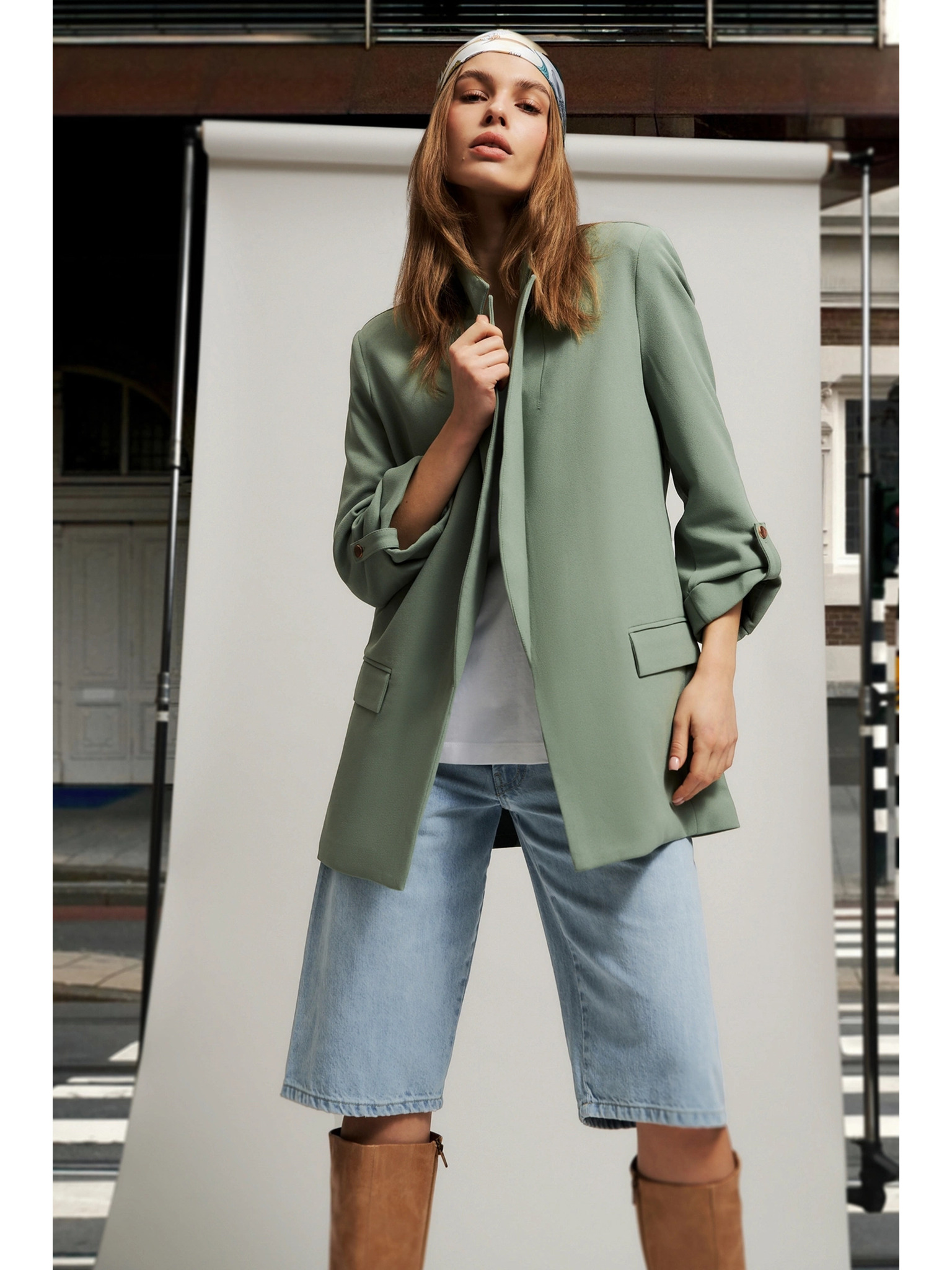 Сако с добавка от лен маслинено зелено Moodo