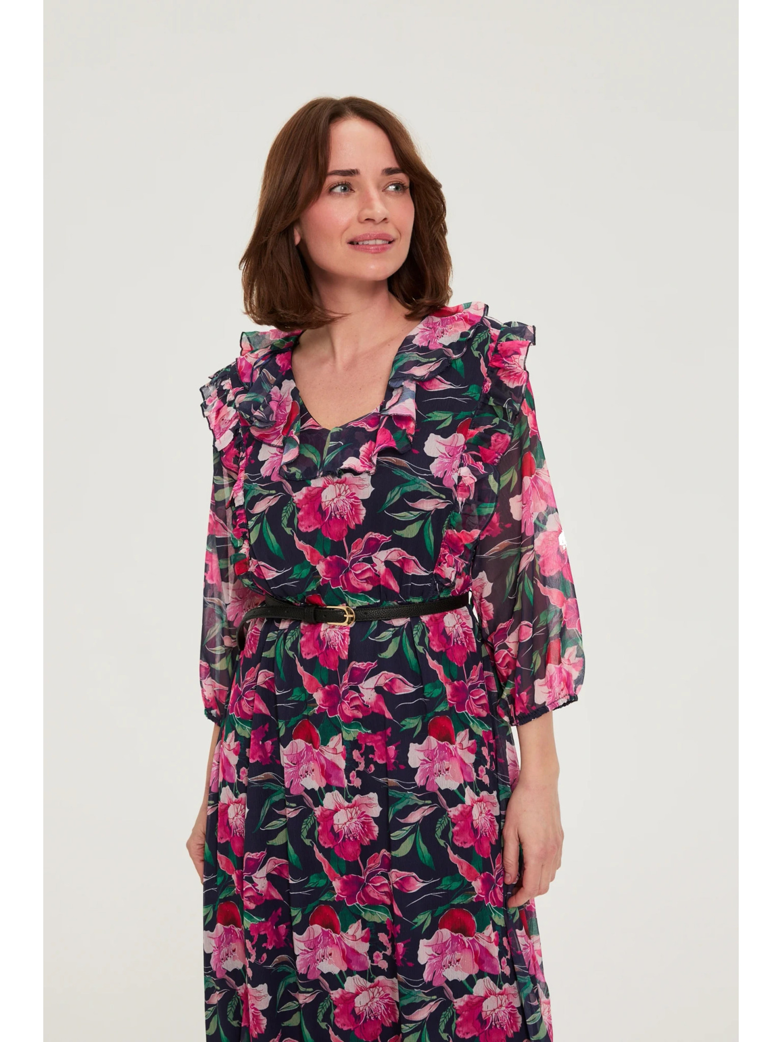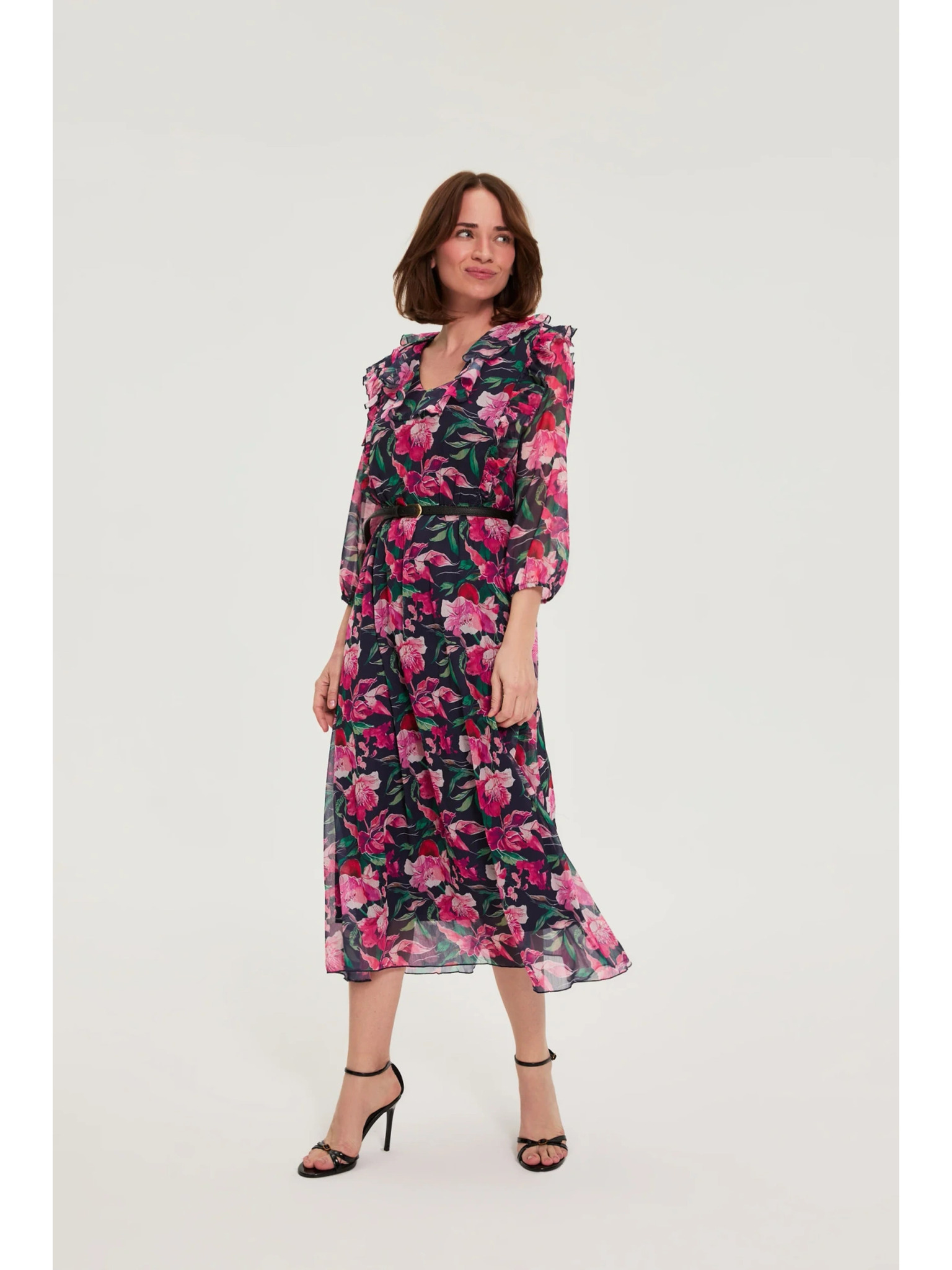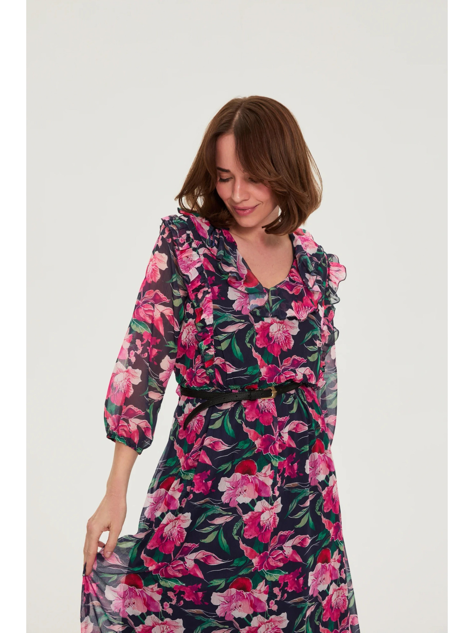 Тъмносини миди рокли с цветя Moodo