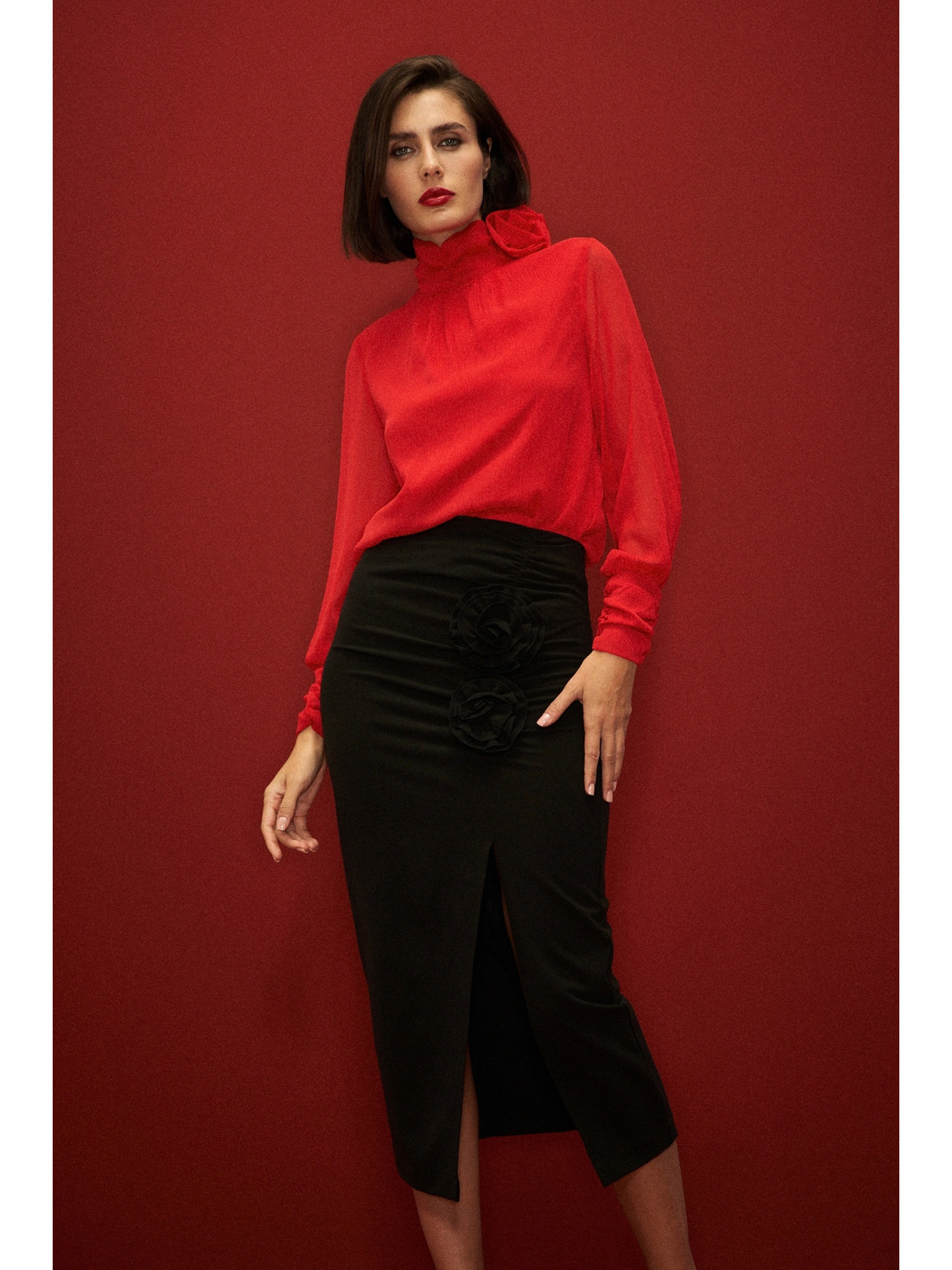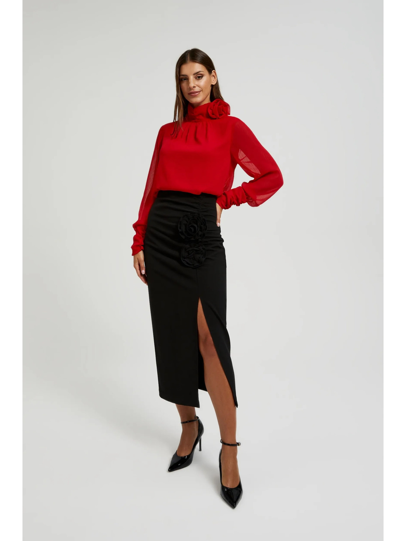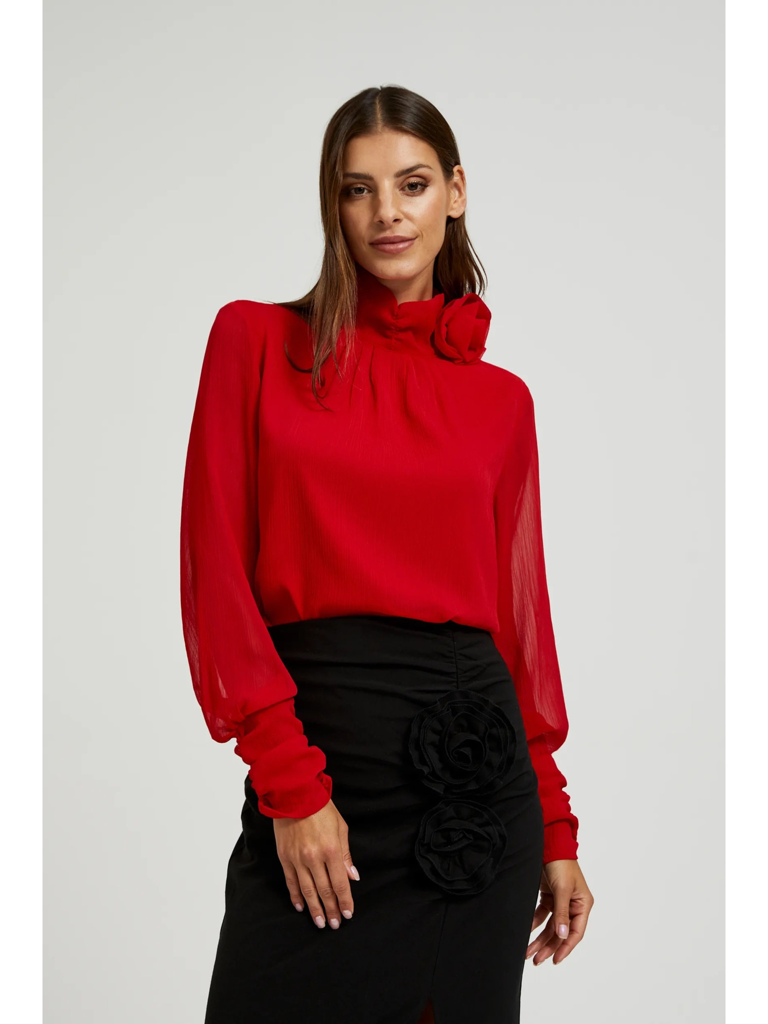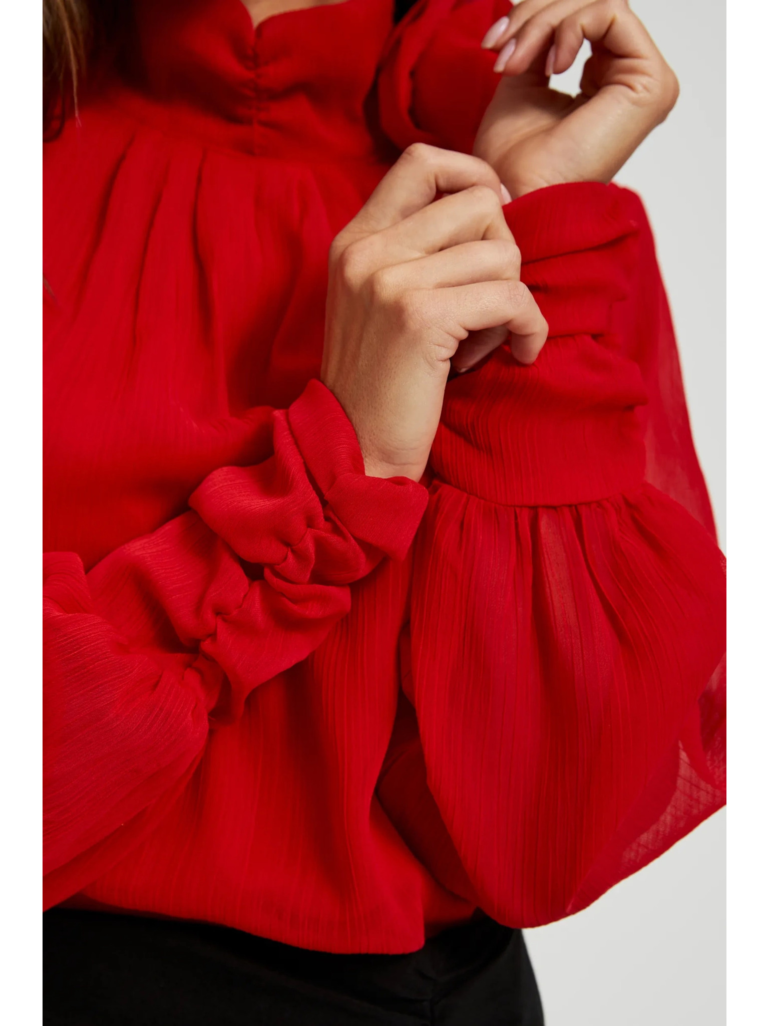 Червена риза с воланти на ръкавите Moodo