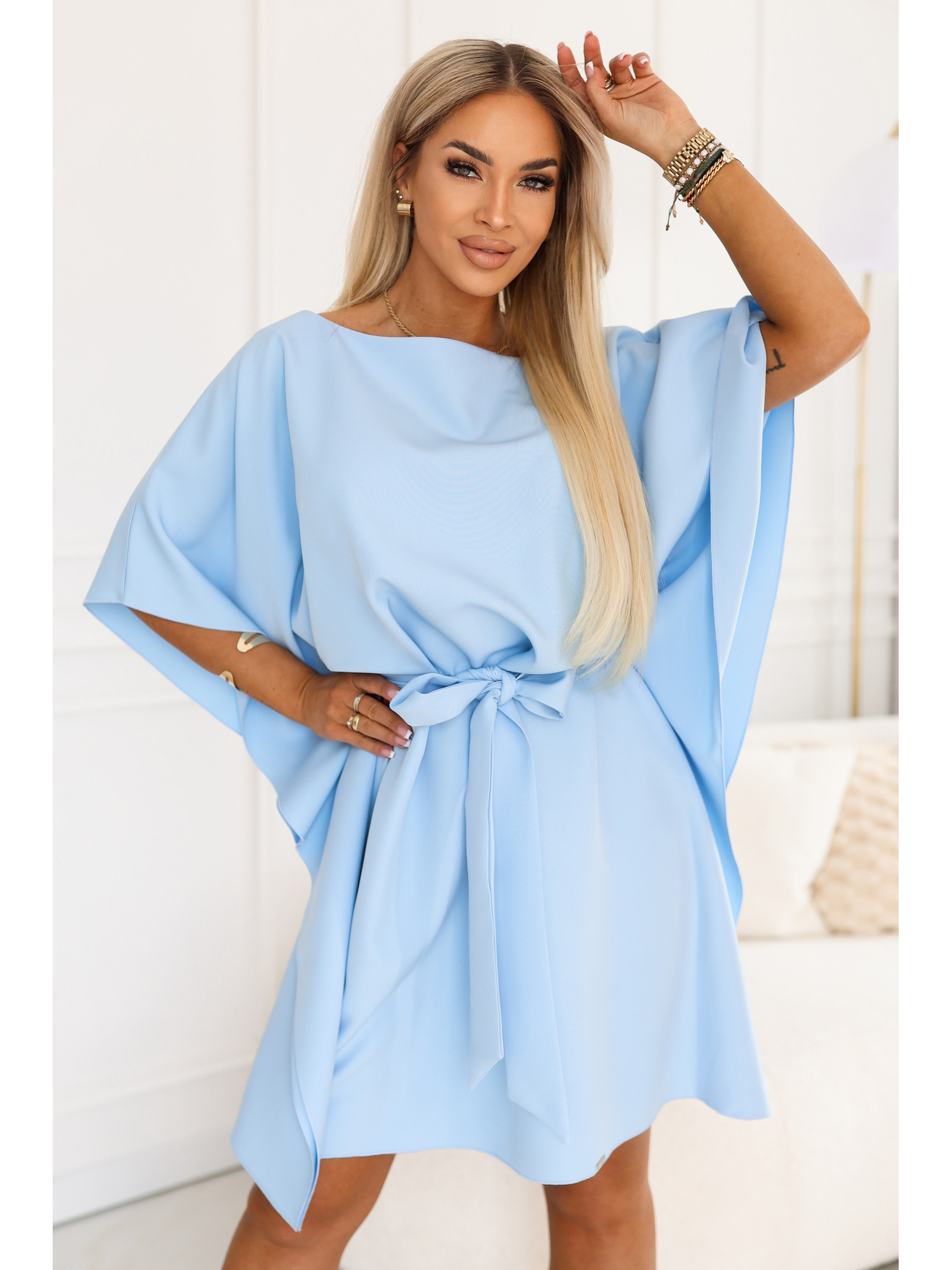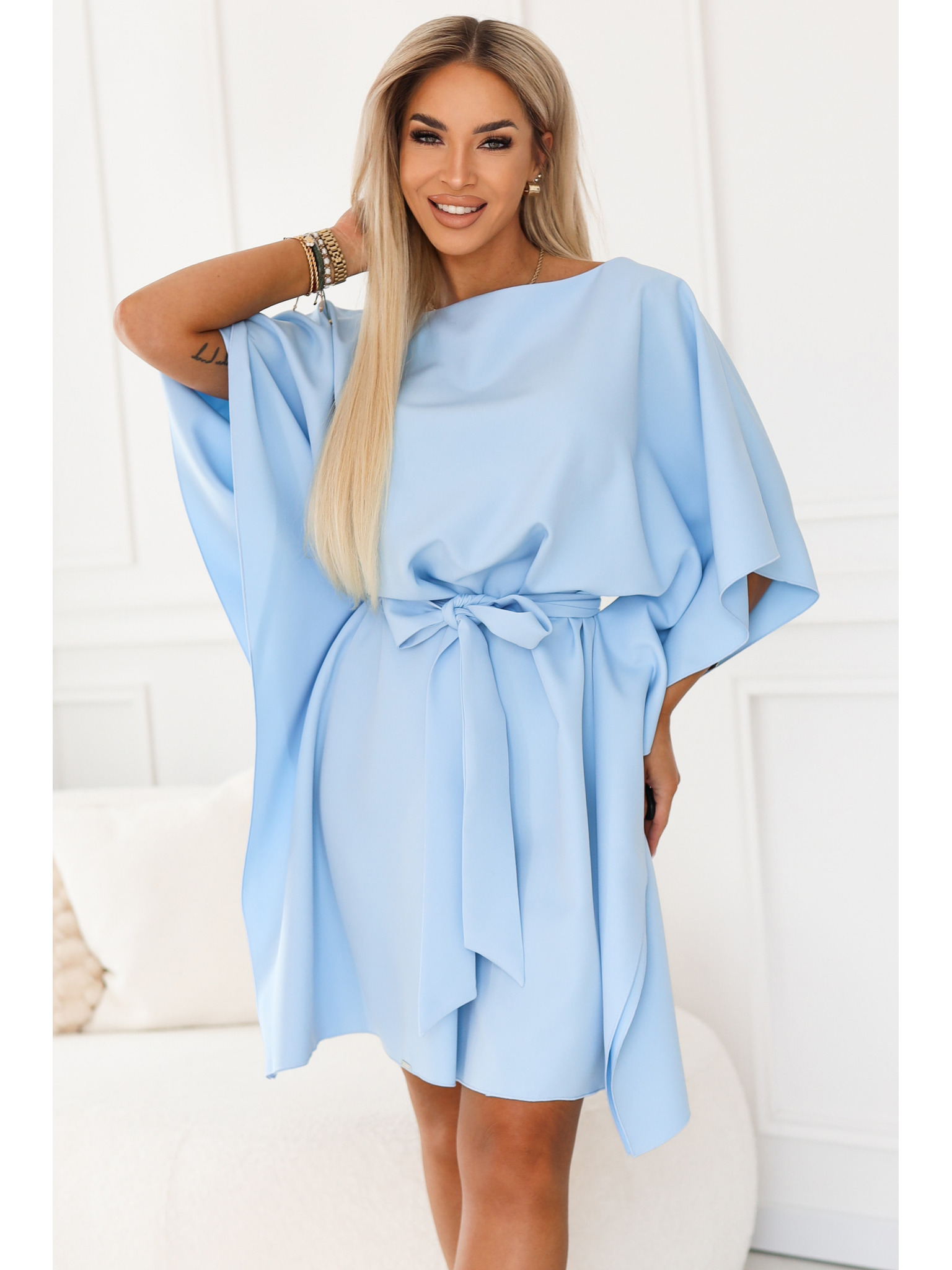 Светлосиня дамска рокля до коленете ORSAY