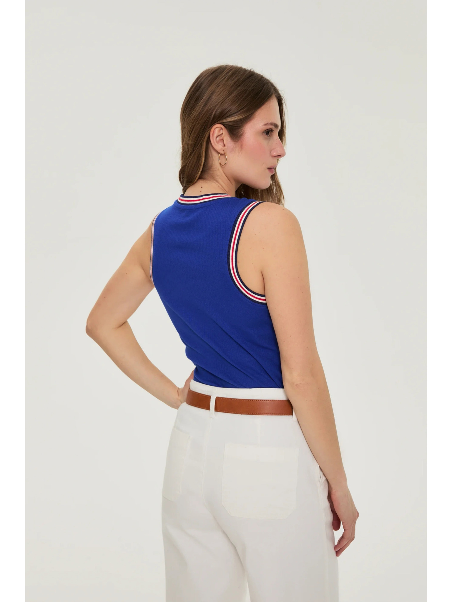 Бял раиран топ с копчета Moodo