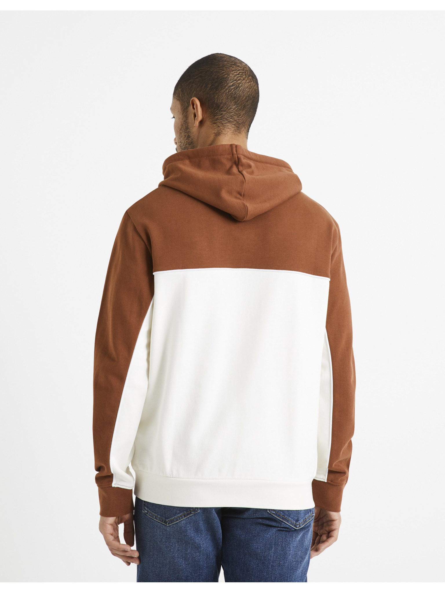 Кафяво-бяла мъжка памучна блуза с качулка Celio Debiding