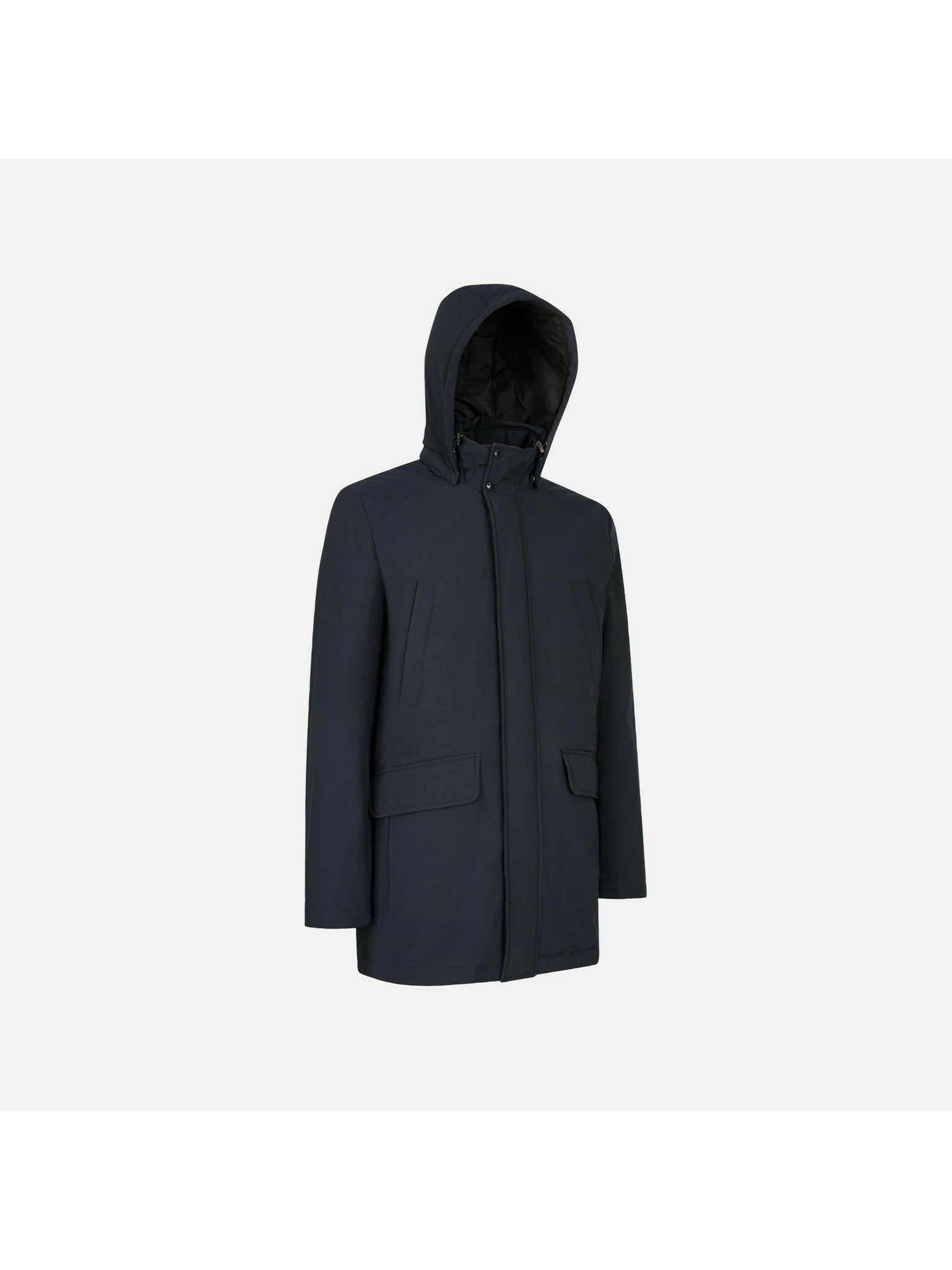 Мъжко асиметрично палто с копчета и висока яка тъмно синьо Ombre Clothing