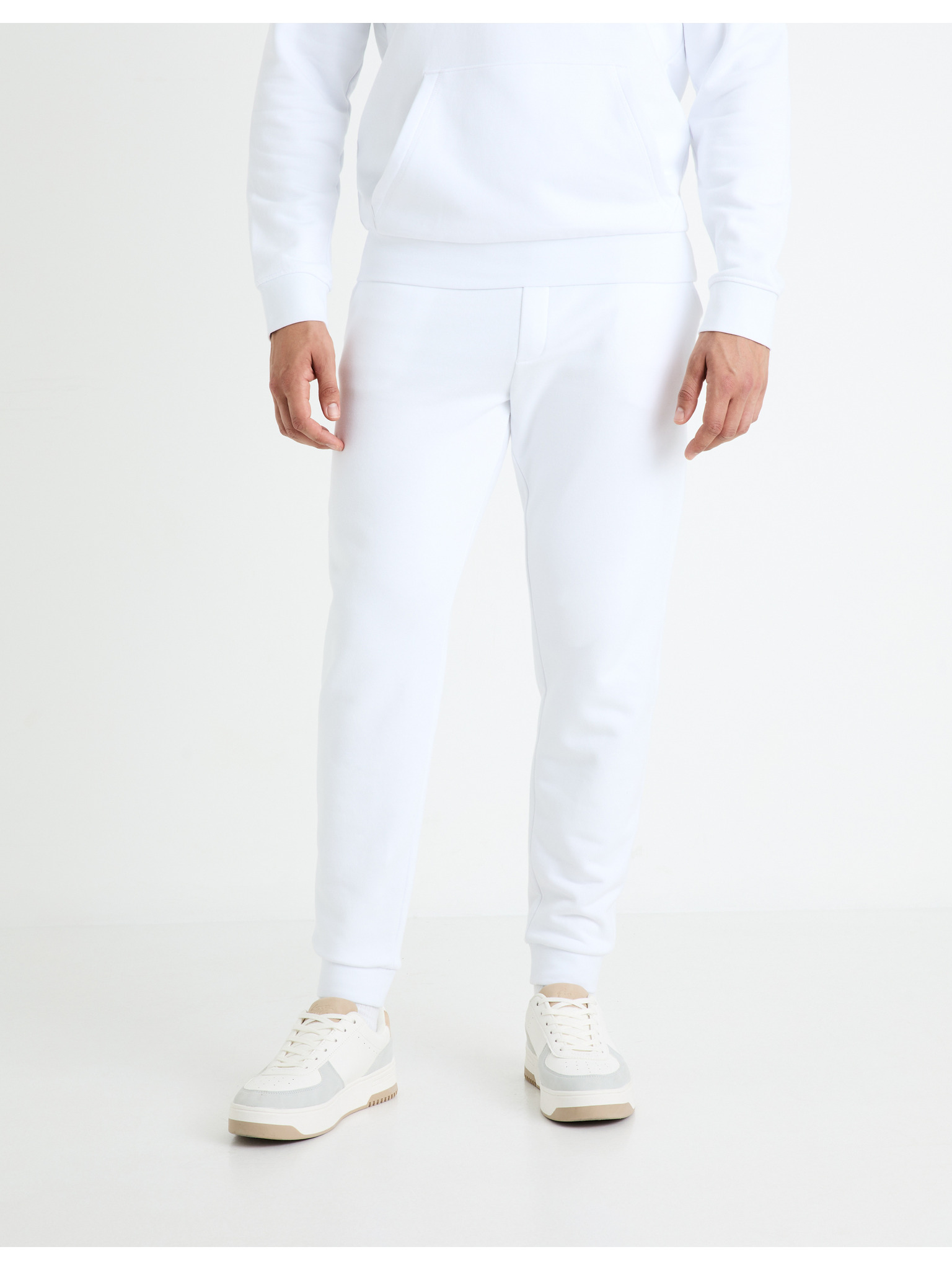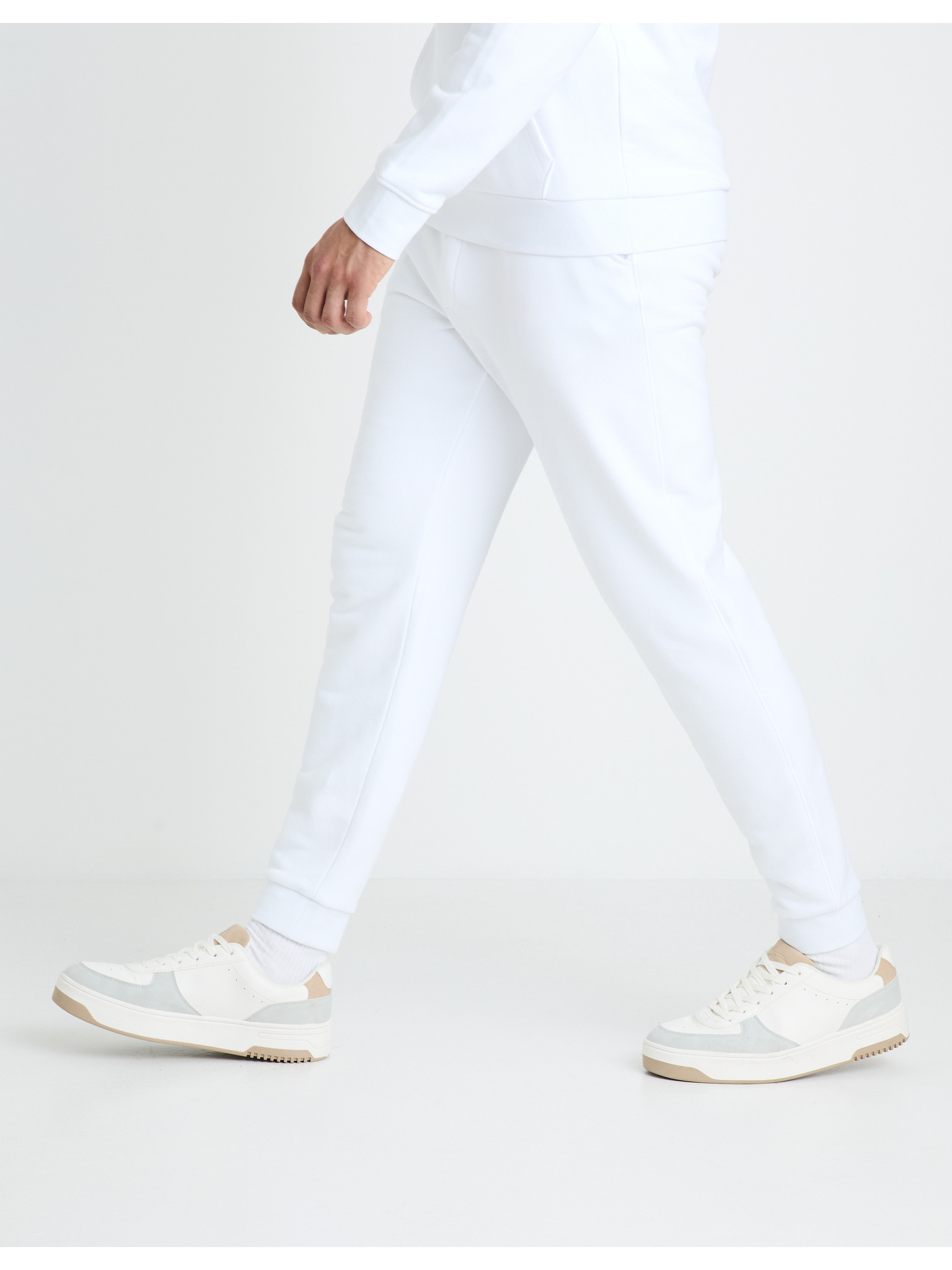 Мъжки спортни панталони с кантове и ребрести крачоли - кремави