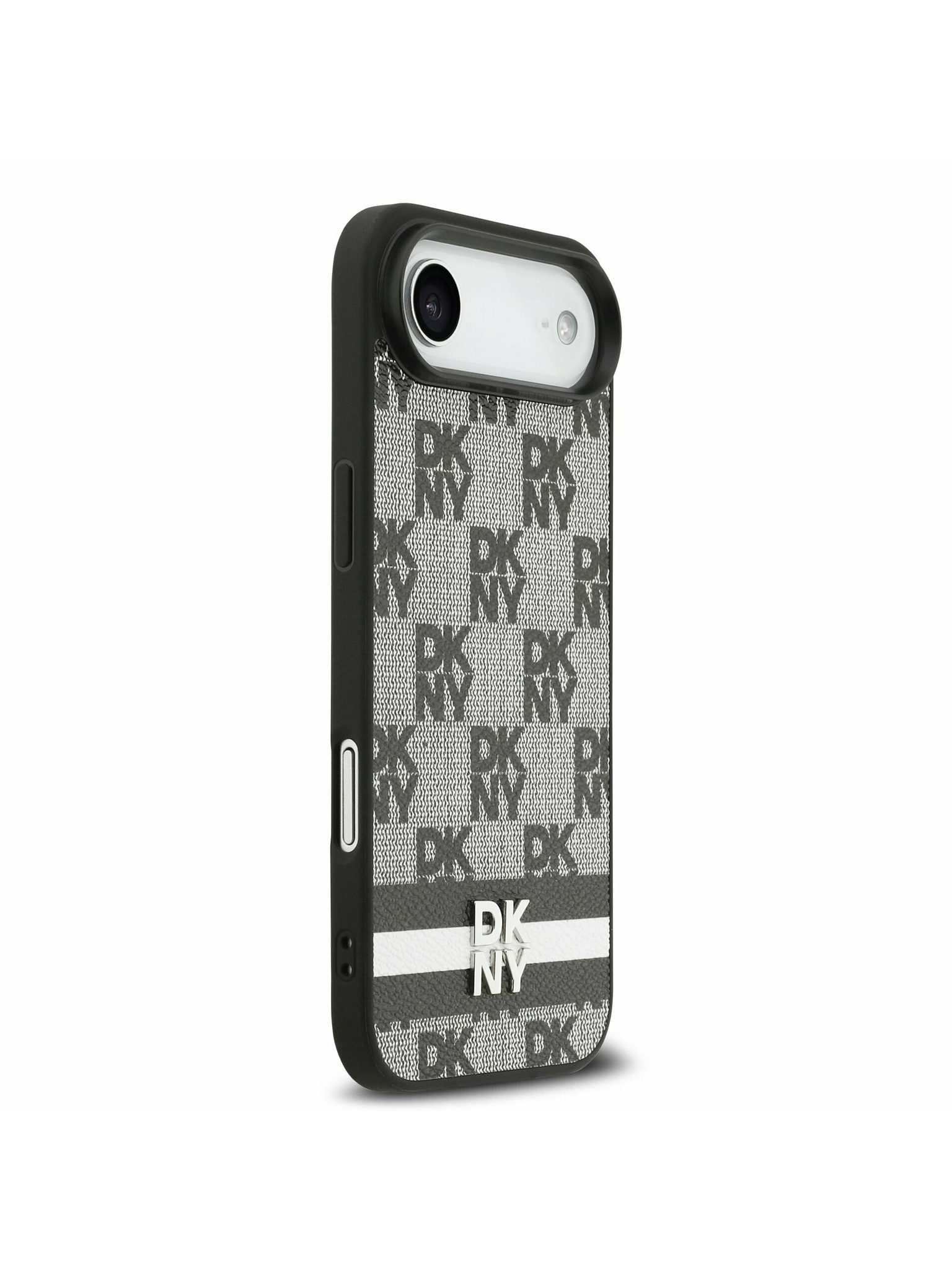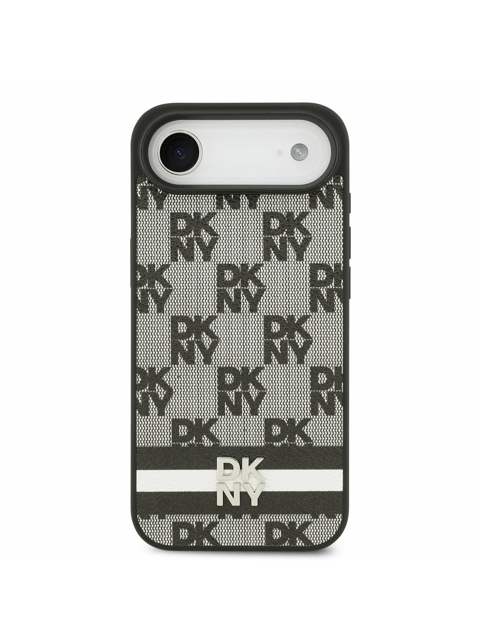 DKNY PU Leather Checkered Pattern and Stripe Заден калъф за iPhone 17 Pro Max Black